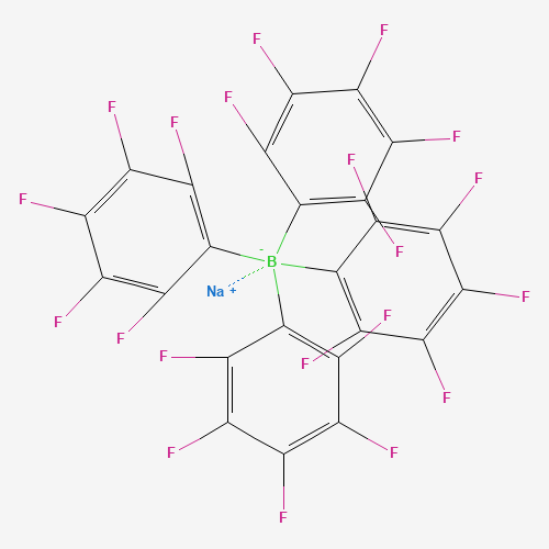 The synthesis of sodium tetrakis(pentafluorophenyl)borate involves several key steps, including the preparation of pentafluorophenylboronic acid as an intermediary. The process is characterized by its specificity in combining boron with pentafluorophenyl groups to form a stable compound. Studies on the electrolytic production of related boron compounds from sodium metaborate suggest a complex interplay of reactions under high temperatures and specific conditions, highlighting the intricate nature of synthesizing boron-based chemicals (Calabretta & Davis, 2007) .