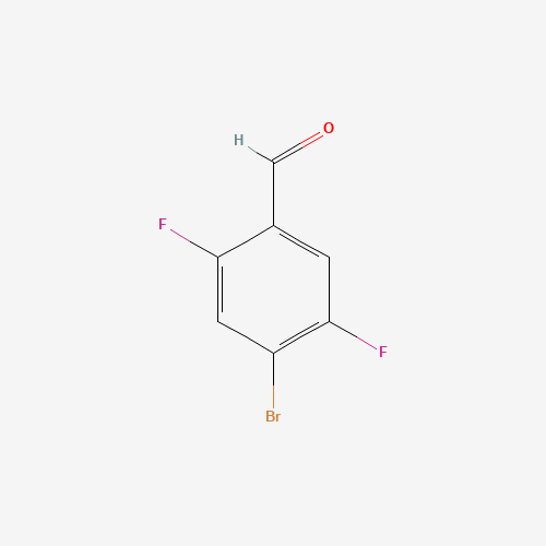 The physical and chemical properties of halogenated benzaldehydes are influenced by the presence of halogen substituents. For example, the introduction of bromine atoms has been shown to affect the thermal, optical, electrochemical, and fluorescent properties of poly(iminophenol)s derived from 4-bromobenzaldehyde. The presence of electron-donating or withdrawing groups can also modulate the electronic properties, as seen in the study of bromine substitution effects on the structure and reactivity of 2,3-dimethoxybenzaldehyde. These insights suggest that 4-Bromo-2,5-difluorobenzaldehyde would exhibit unique physical and chemical properties due to the combined effects of bromine and fluorine atoms on the benzene ring.