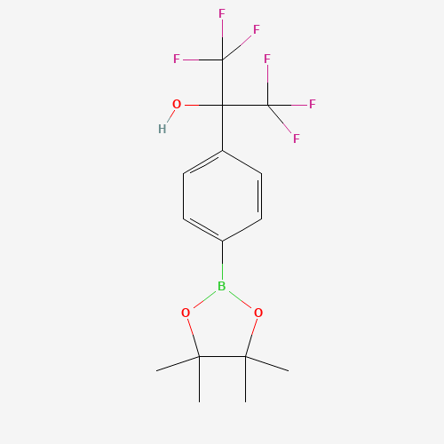 1,1,1,3,3,3-Hexafluoro-2-(4-(4,4,5,5-tetramethyl-1,3,2-dioxaborolan-2-yl)phenyl)propan-2-ol is a useful research compound. Its molecular formula is C15H17BF6O3 and its molecular weight is 370.1. The purity is usually 95%. BenchChem offers high-quality 1,1,1,3,3,3-Hexafluoro-2-(4-(4,4,5,5-tetramethyl-1,3,2-dioxaborolan-2-yl)phenyl)propan-2-ol suitable for many research applications. Different packaging options are available to accommodate customers' requirements. Please inquire for more information about 1,1,1,3,3,3-Hexafluoro-2-(4-(4,4,5,5-tetramethyl-1,3,2-dioxaborolan-2-yl)phenyl)propan-2-ol including the price, delivery time, and more detailed information at info@fluoromart.com.