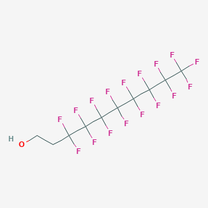 1,1,2,2-Tetrahydroperfluoro-1-decanol, also known as THPD, is a synthetic, fluorinated alcohol with a wide range of applications in the scientific research field. It is a colorless liquid with a low boiling point of -3.3°C and a high melting point of -31.5°C. It is soluble in many organic solvents and is stable under normal conditions. It is used as a surfactant, a lubricant, and a solvent in various scientific research applications.