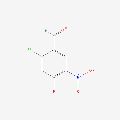 The synthesis of 2-Chloro-4-fluoro-5-nitrobenzaldehyde involves several steps. The process starts with a nitration reaction on 2-chloro-4-fluorotoluene, followed by a bromination reaction in the presence of benzoyl peroxide. The final step involves a hydrolysis and oxidation reaction to obtain the product.